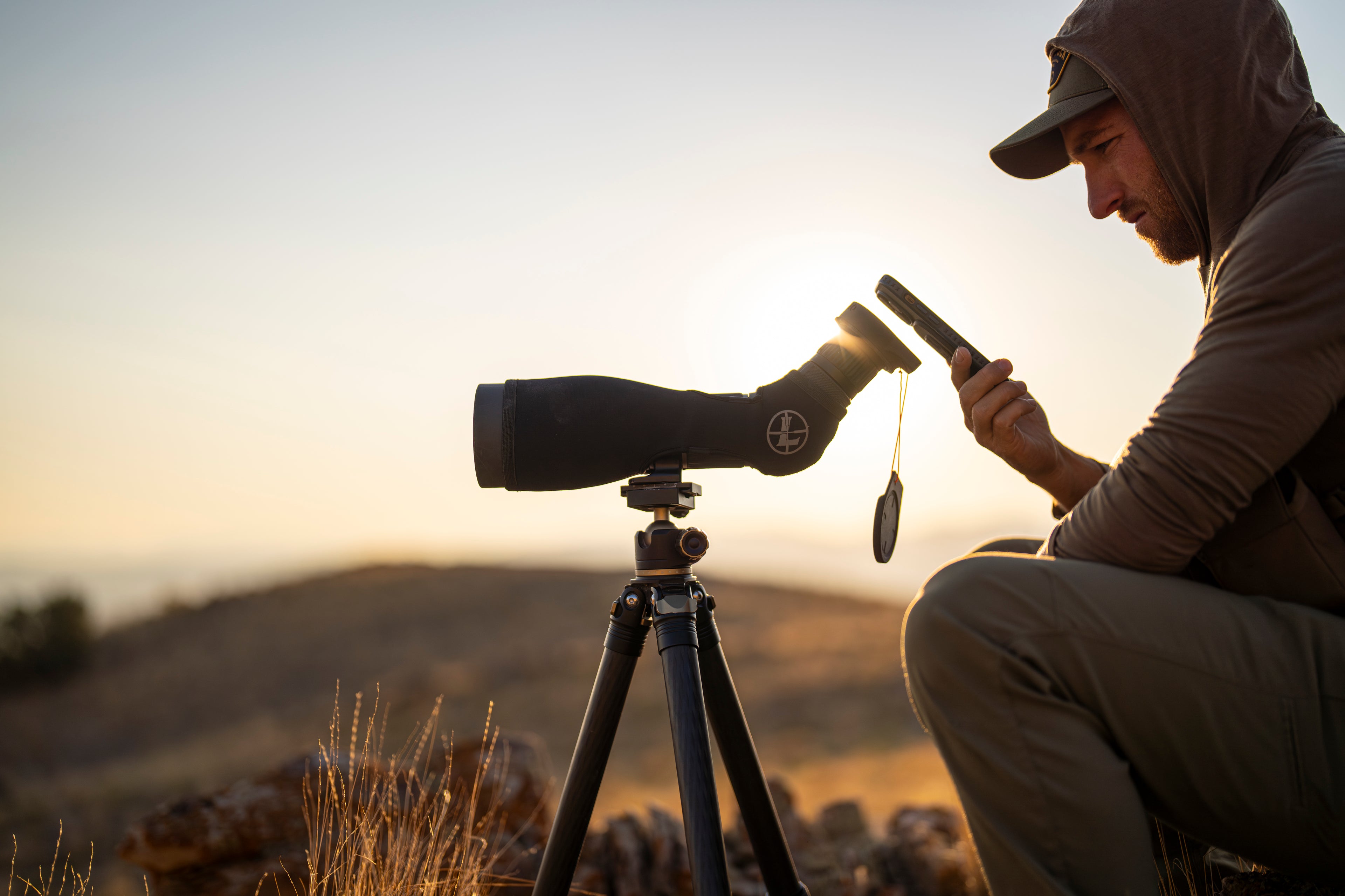 The practice of using a smartphone camera to take photographs of wildlife, celestial objects, and distant scenery through the eyepiece of a spotting scope, telescope, or other optic. Combining the optical precision of scopes and the digital power of modern phone cameras, digiscoping brings distant subjects into detailed, breathtaking focus.